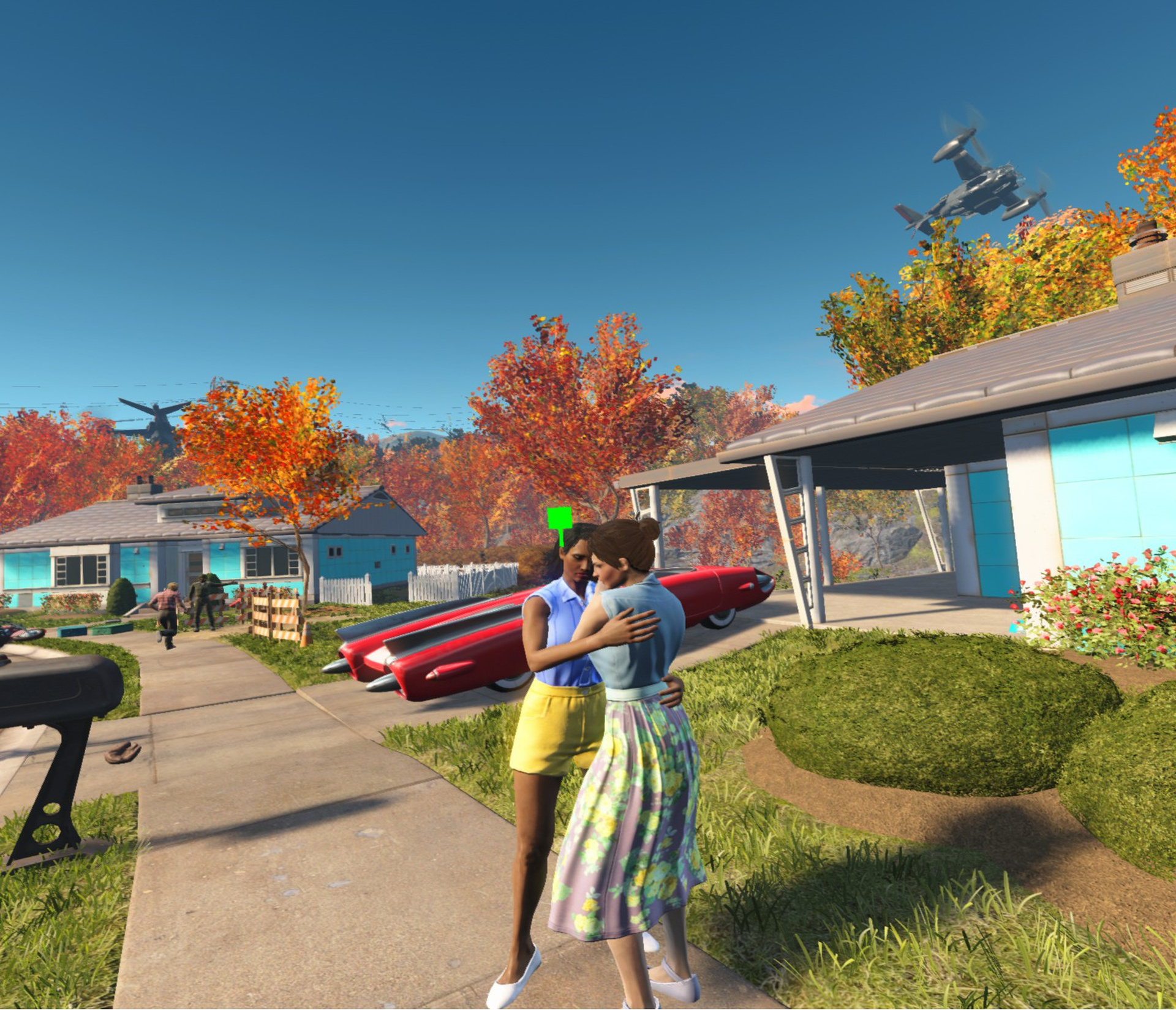 El desarrollador nos da una miríada de opciones para movernos: desde el ya por algunos temido teletransporte y el no siempre agradable movimiento libre, este último pudiéndolo configurar y ajustar a nuestro gusto (algo esencial debido a los límites de confort para VR que tiene cada usuario). La representación en realidad virutal del pitboy cumple su cometido; ya no tanto las armas, que si bien pueden visualizarse en tiempo real, al no tener brazos que las sujeten rompen un poco la inmersión. Pero es en la interacción con el escenario donde empezamos a ver más problemas, y donde más se resiente el juego a la hora de poder meternos dentro de él. Es un cambio bastante brusco el de poder manipular las armas en tiempo real para luego darnos cuenta de que no podemos hacer lo mismo con los elementos del escenarios. Puede pareceros una tontería, pero el simple detalle de no poder interactuar con nuestro perro en VR nos deja un mal sabor de boca, y a este respecto podemos expandir lo del perro al resto de interacciones del juego.